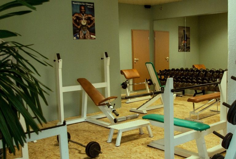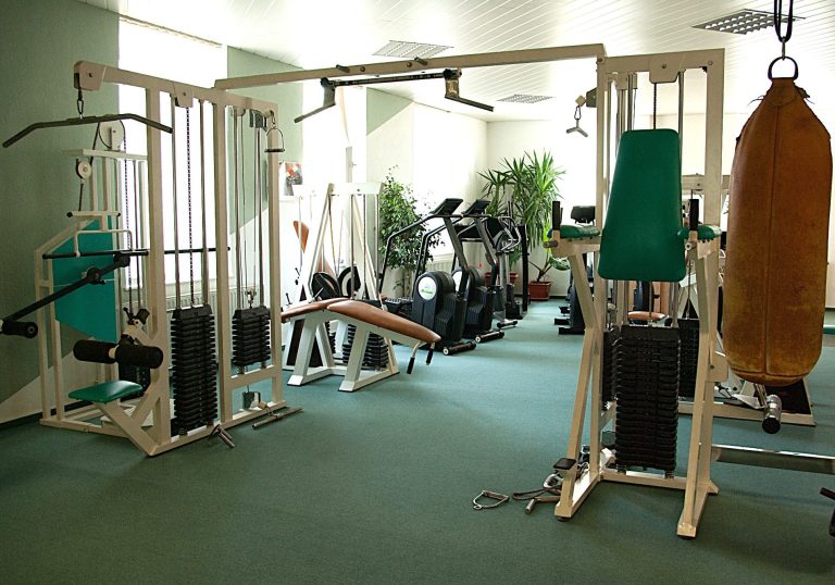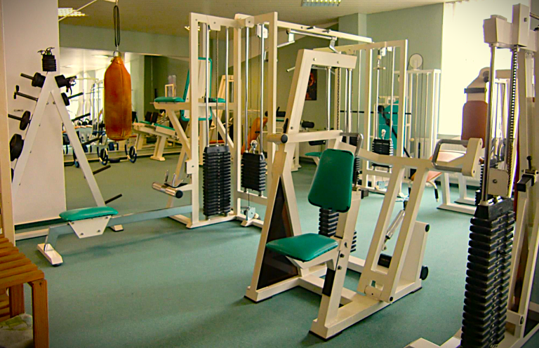 Auf der ersten Etage befinden sich Geräte für Kraft- und Ausdauertraining, eine Hantelecke und/sowie zum eine Erfrischungsbar